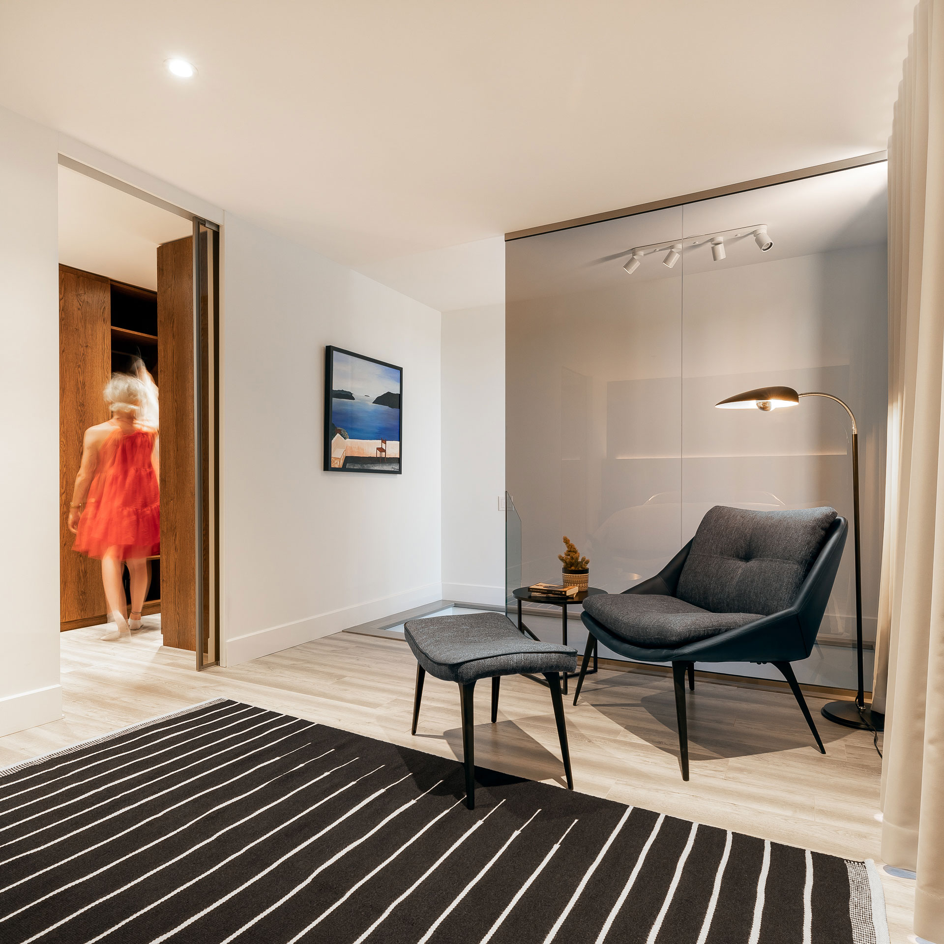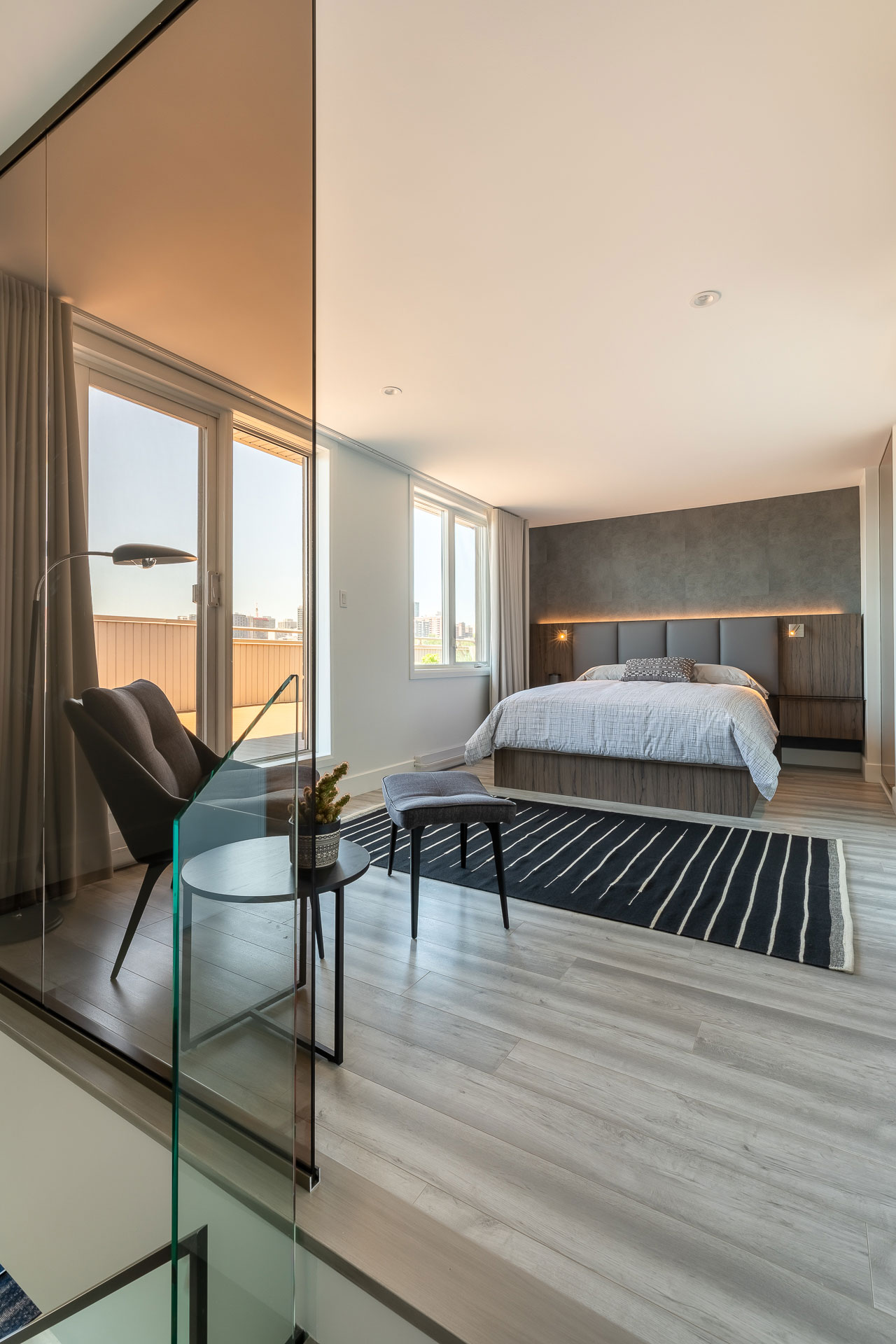 Lead designer, Frédric Clairoux, oriented his design around the concept of a high-end hotel while incorporating the client’s need to feel at home .