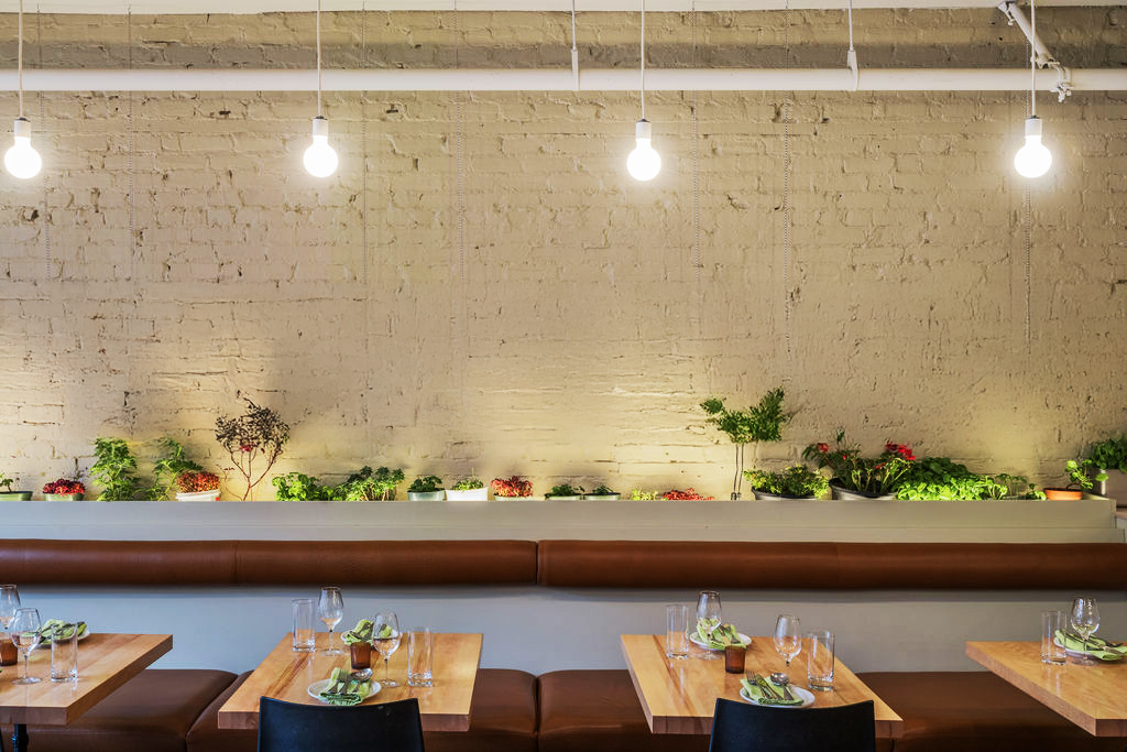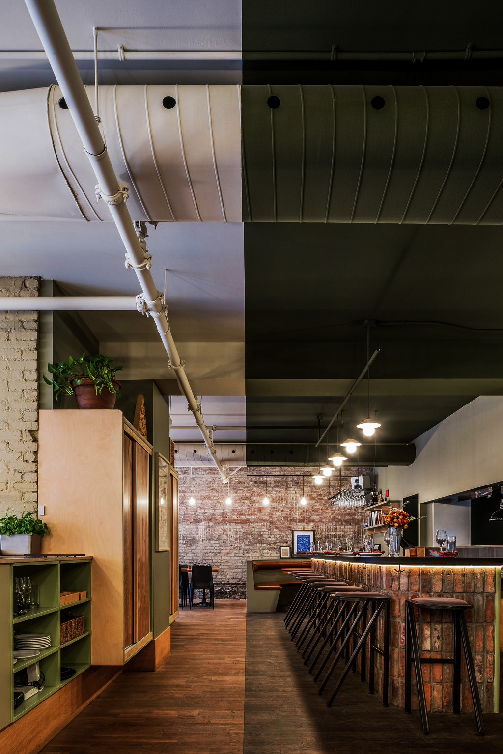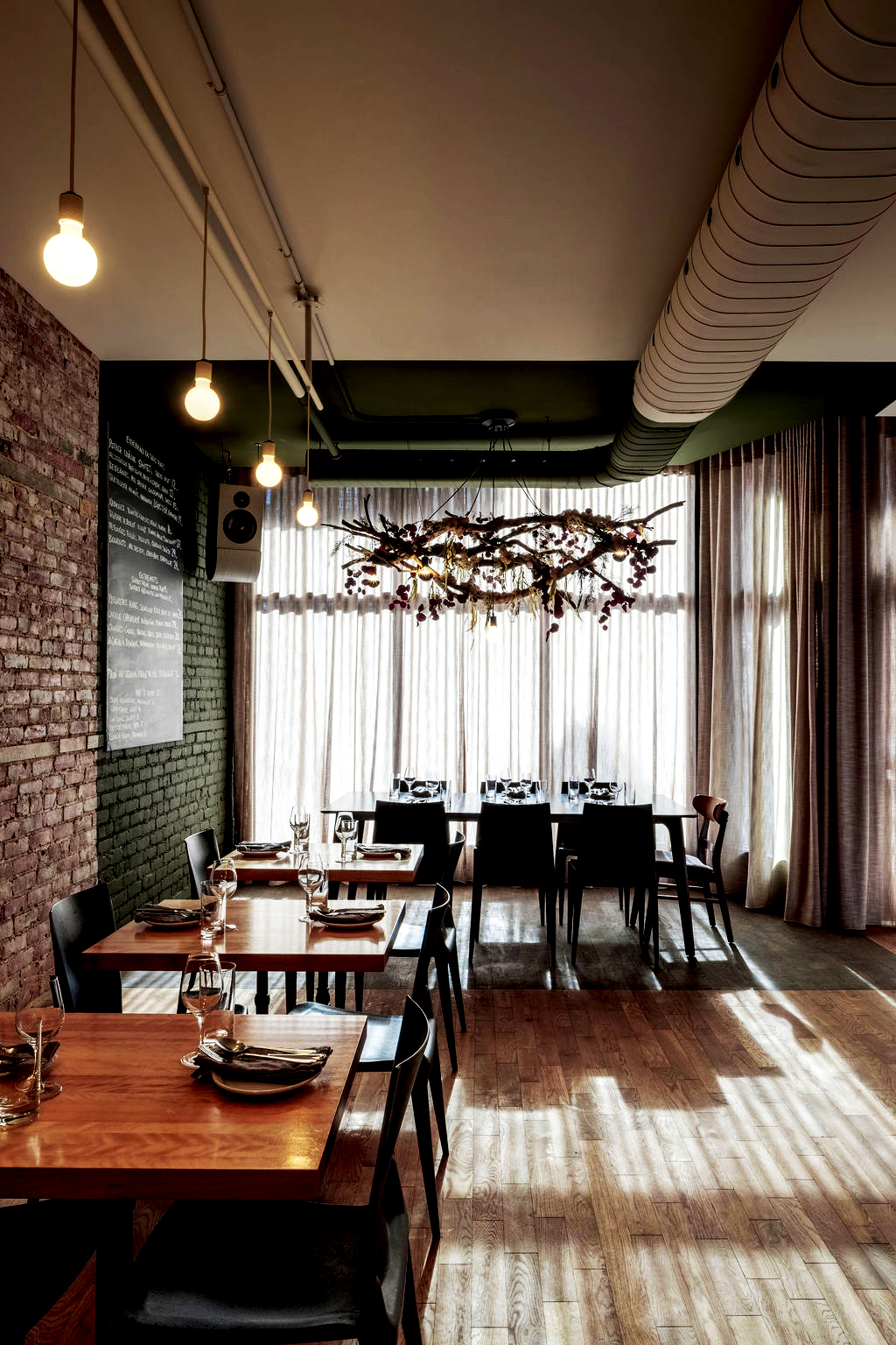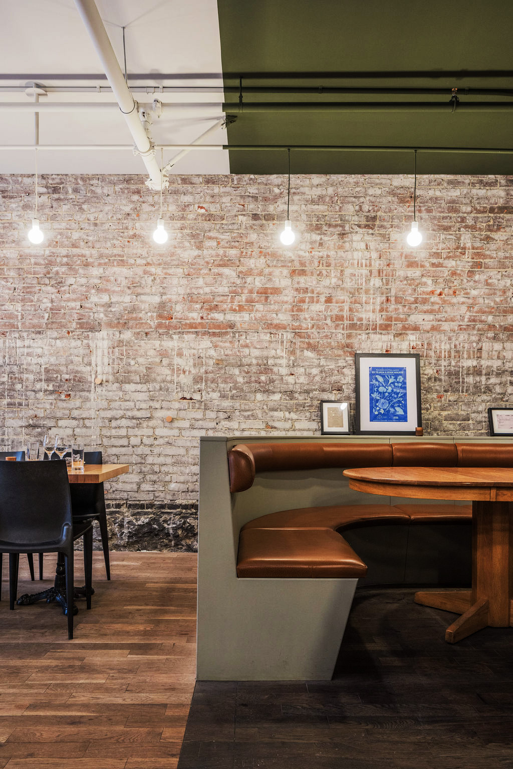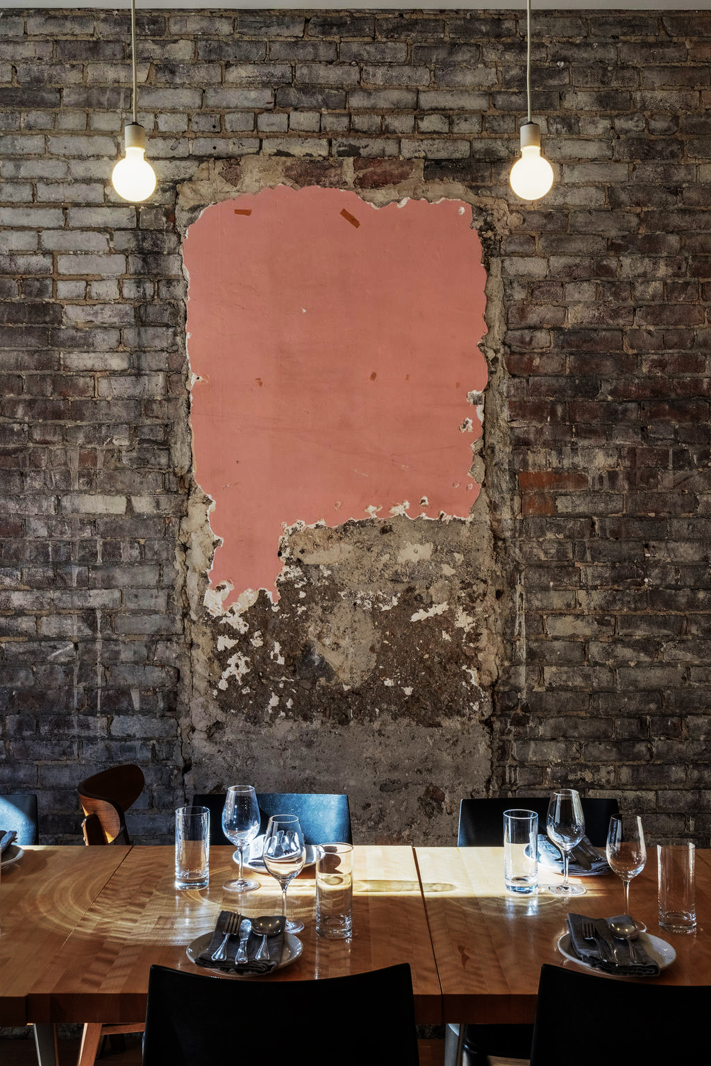 Le mandat confié à Clairoux visait à traduire, dans le design de l’espace, les valeurs fondamentales du restaurant : durabilité, authenticité et convivialité. L’utilisation de matériaux récupérés de l’ancien local, tels que les briques et ardoises intégrées au nouveau bar, témoigne de cette volonté de continuité et de respect de l’environnement. Les tables et chaises existantes ont été réutilisées, et de nouvelles pièces ont été soigneusement sélectionnées pour compléter l’aménagement, créant ainsi une atmosphère chaleureuse et authentique. (Tastet)